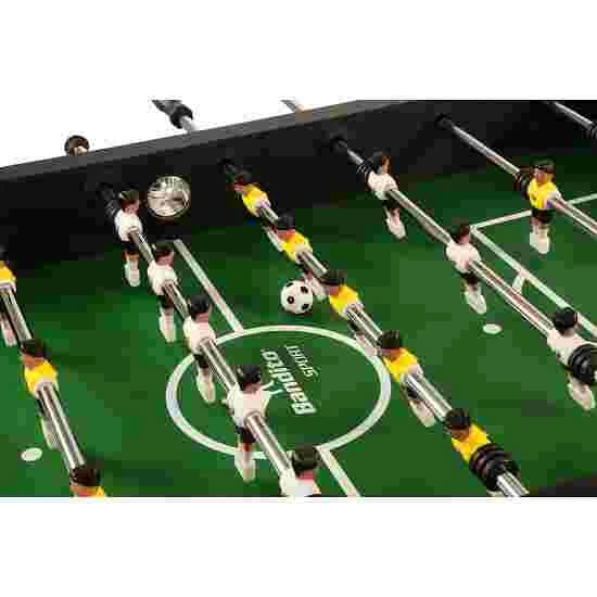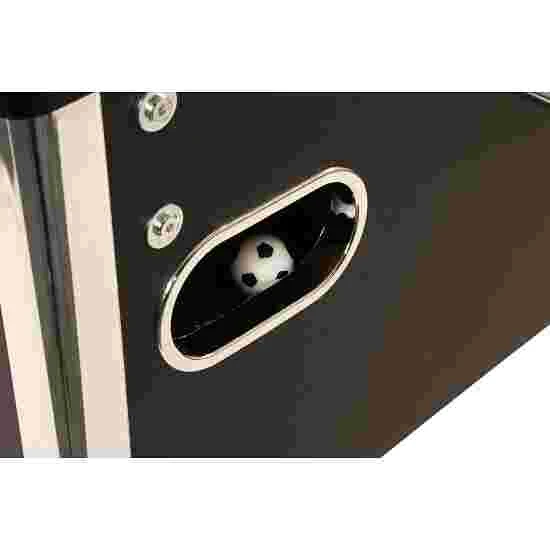 This indoor football table is a guaranteed hit! The miniature version of football is great for young and old alike and is a must-have in any games room. Perfect for use in youth centres, youth hostels, schools or at home. The table is well-equipped for intensive use thanks to its robust construction and melamine coating. The table’s body and legs are made from MDF and the game bars with wooden handles run on bearings. There are also rubber pads and spacers on the side sections. The football table also has a countersunk box which makes it easy to collect the ball on both sides of the table after a goal is scored.