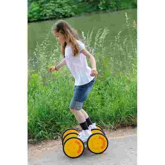 The Pedalo “Classic” has large double wheels as well as non-slip and waterproof 30-cm-long standing boards, and provides an ideal introduction to the world of Pedalo pedal racers. Riding on the pedal racer simulates walking motion sequences and requires you to continuously shift your weight between both legs. This exercise improves responsiveness, leg axis stability and, as a result, steadiness whilst walking. The low difficulty level makes the Pedalo “Classic” suitable for first exercises and for learning additional skills before moving on to the Pedalo “Sport”. As soon as you are competent on the double pedal racer you can very easily convert it into two Pedalo “Sport” pedal racers by buying four standing boards.