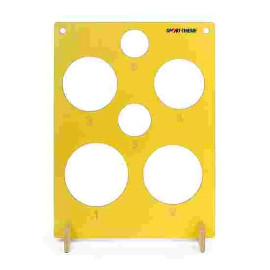 The Sport-Thieme target wall can be used anywhere and is quick to set up. The holes in the wall are labelled with scores from 1 to 6. The winner is the person who manages to throw the most points with the bean bags. By the way: these bean bags are made of 100% cotton. If you are playing with more than two teams, you can just use alternatives such as small soft foam balls. To vary the level of difficulty, set up the Sport-Thieme target wall at an angle or simply hang it up.