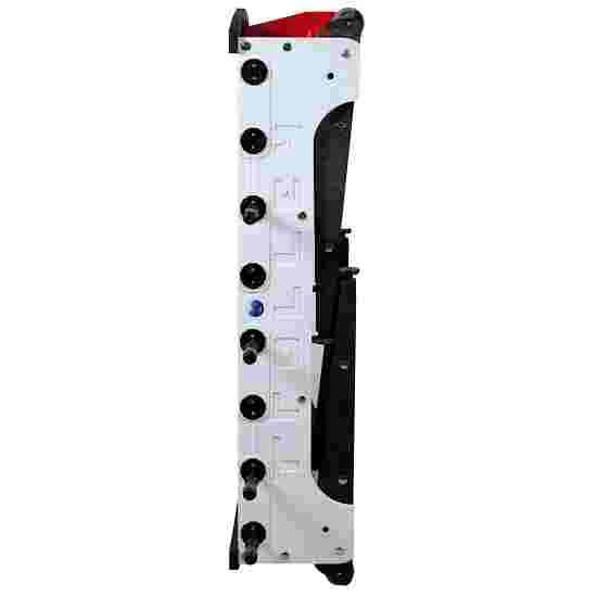 The “Storm Outdoor Trolley” football table is an attraction for outdoor swimming pools, campsites and schools. The football table with its 20-mm-thick thermoplastic synthetic resin body withstands everyday loads from games just as easily as it does the weather. The body stands on a classic slanted table-leg construction. The chrome-plated bars are particularly sturdy and run in sleeve bearings. This allows you to play on without getting fatigue – even when you are really going for it. The black plastic handles guarantee optimum control of the game. The figures are virtually unbreakable and are moulded onto the bars as well as cushioned against the walls of the body by spacer springs. The playing field is made from 5-mm, specially tempered strong glass with white lines. Thanks to the plastic corners, the ball is always in play. The goals / ball returns integrated into the ends allow the balls to be easily retrieved from both sides of the table. Ball feeds on every side complete the package for comfortable gameplay. The goalkeeper can be rotated by 360 degrees.